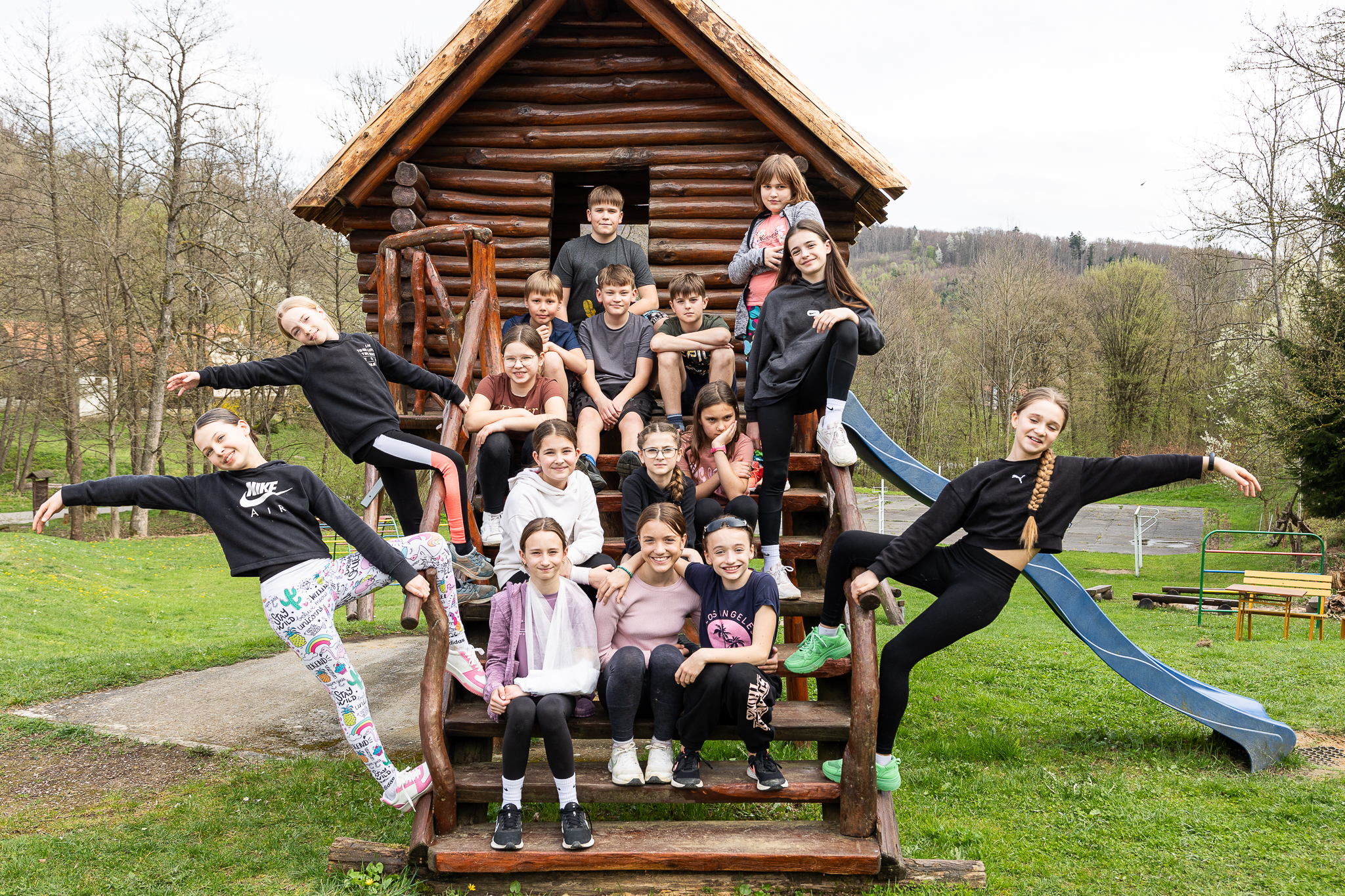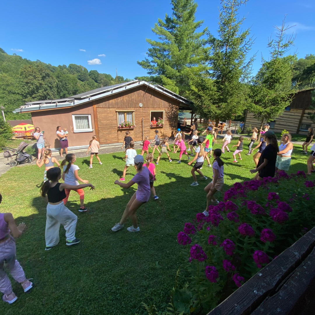 Při deštivém počasí dětské soubory často zkoušejí v naší tělocvičně, nebo v některém ze sálů hlavní budovy. Ovšem pokud je počasí příznivé, je příjemné trávit chvíle pod širým nebem, kde je v našem údolí míst s udržovaným travním porostem a zpevněnými plochami opravdu dostatek.